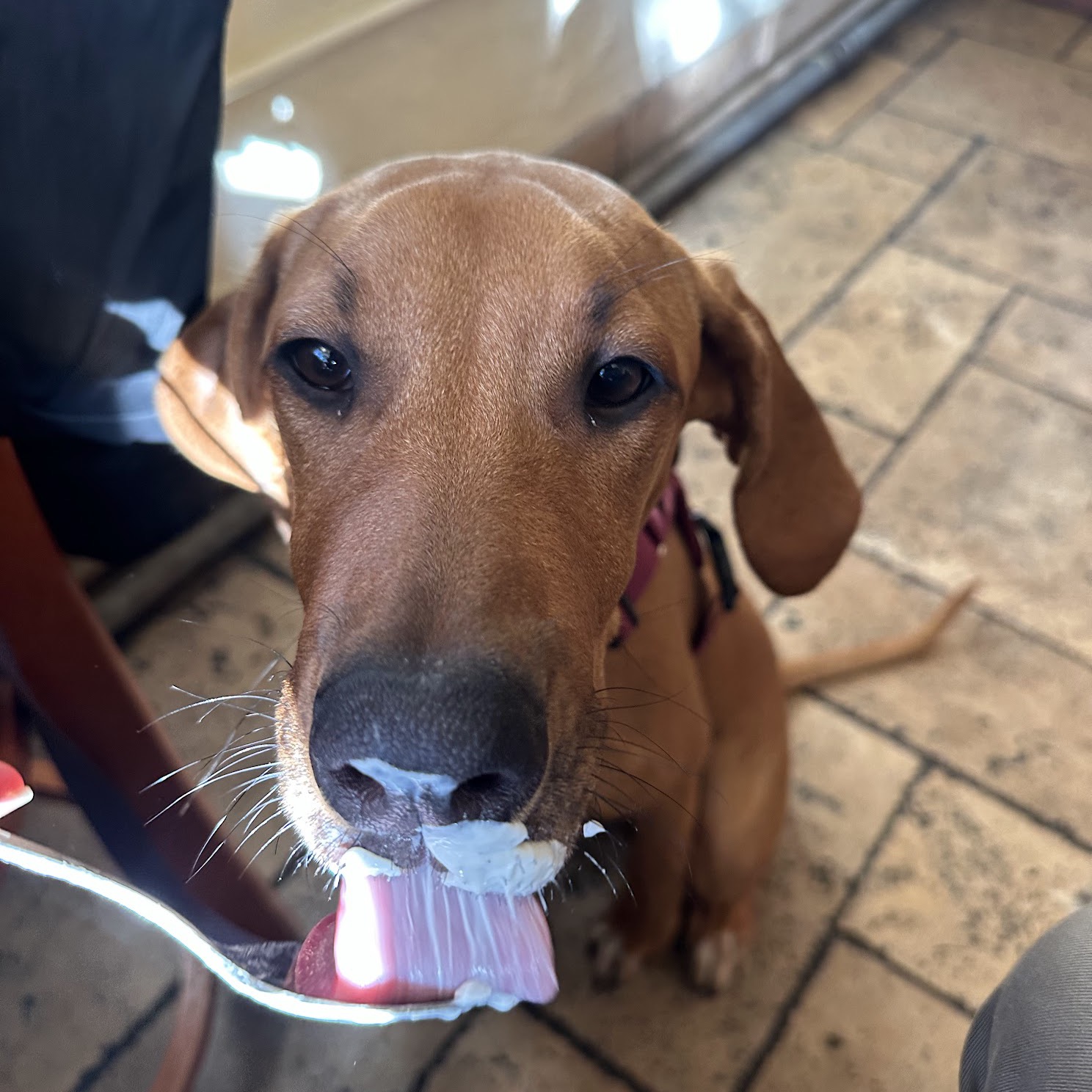 Dog licking a spoon